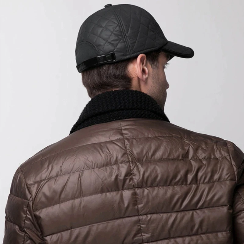 Waterproof Leather Men Winter Baseball Cap Warm Thick Bomber Hat with Earmuffs