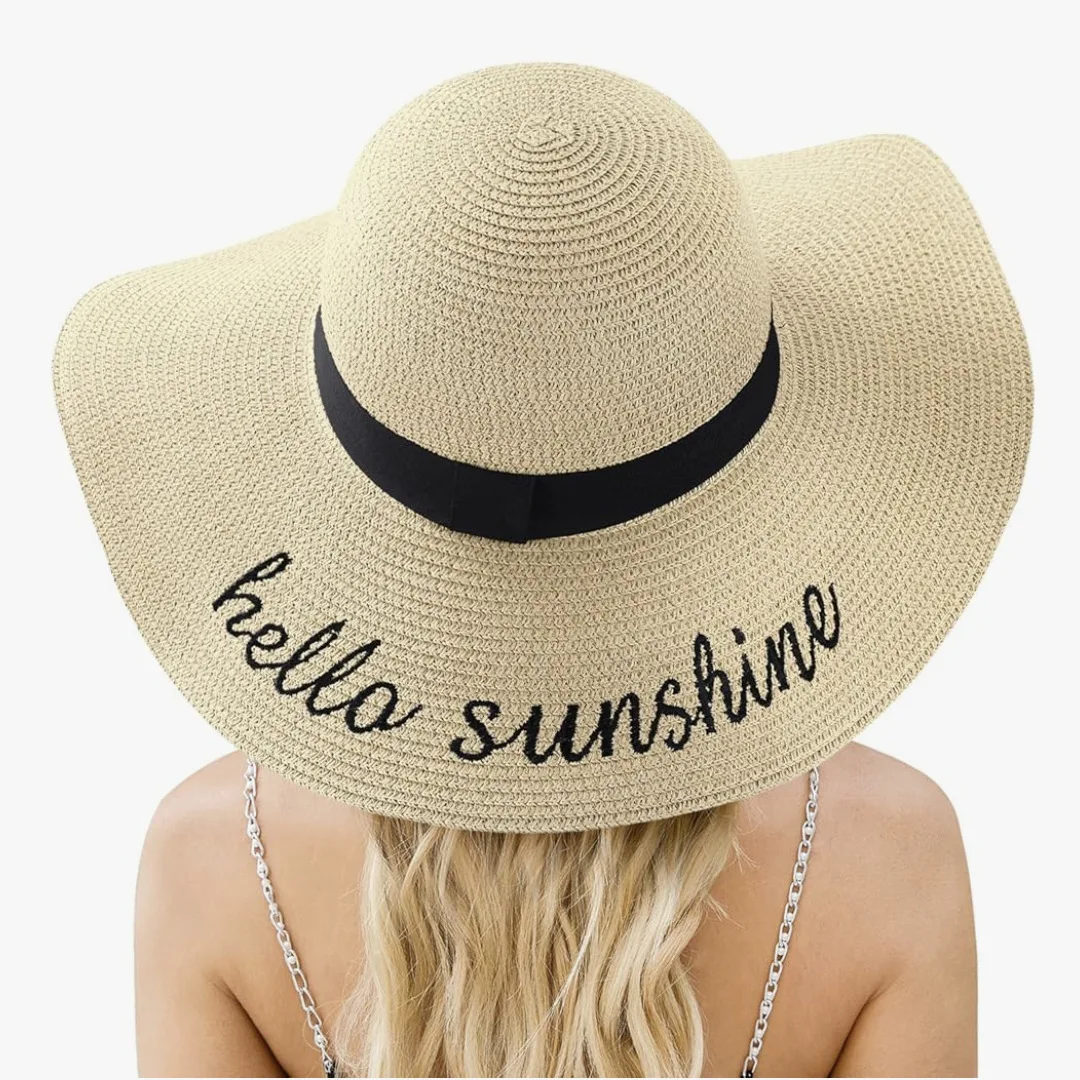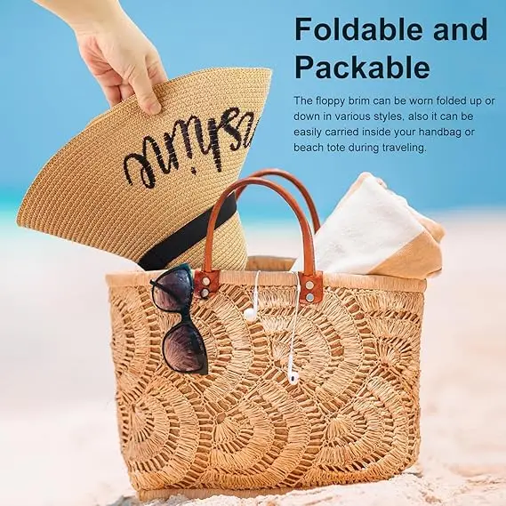Womens Straw Hat Wide Brim Floppy Beach Sun Hat for Women UPF 50+ Vacation