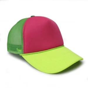 This premium blank tri-color trucker snapback hat offers superior comfort and a classic look for any style.