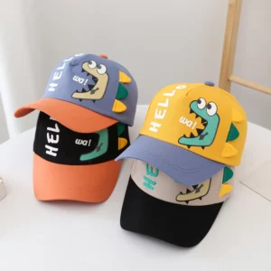 Protect your little ones with these stylish dinosaur-patterned baseball caps. Durable and comfortable for active play, perfect for sunny days and sporty adventures.