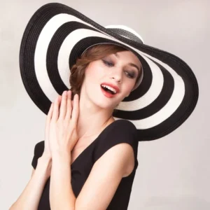 Protect yourself and enjoy the sun in style with this oversized, wide-brim sun hat. Perfect for seaside vacations and beach days, featuring a vibrant striped straw design.
