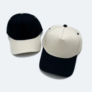 Stylish two-tone baseball caps offer custom logo options. Durable cotton construction provides comfortable all-day wear for any activity.