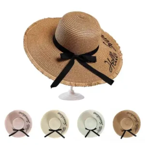 Stay stylishly shaded this summer with our wide brim straw hat. Perfect for beaches vacations, this foldable design offers sun protection plus effortless chic.